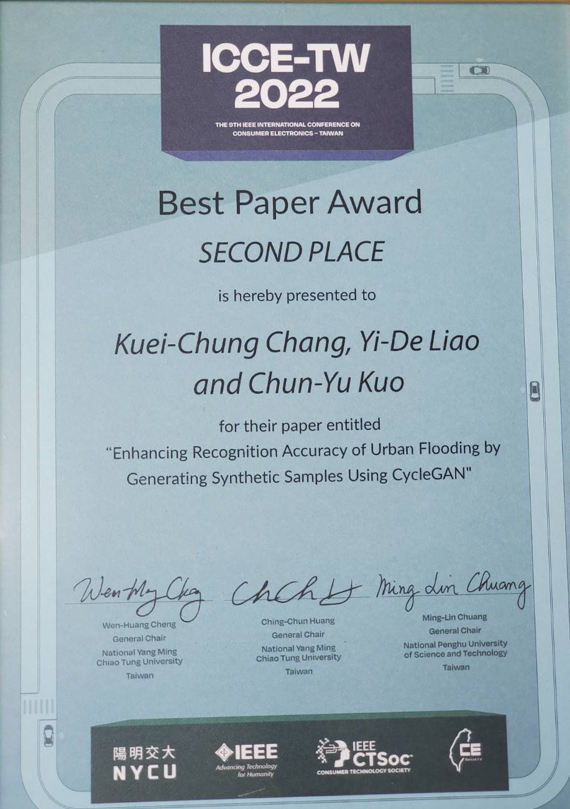 張貴忠老師指導研究生郭俊佑與廖益德論文獲得 IEEE ICCE-TW 2022 國際研討會最佳論文獎第二名