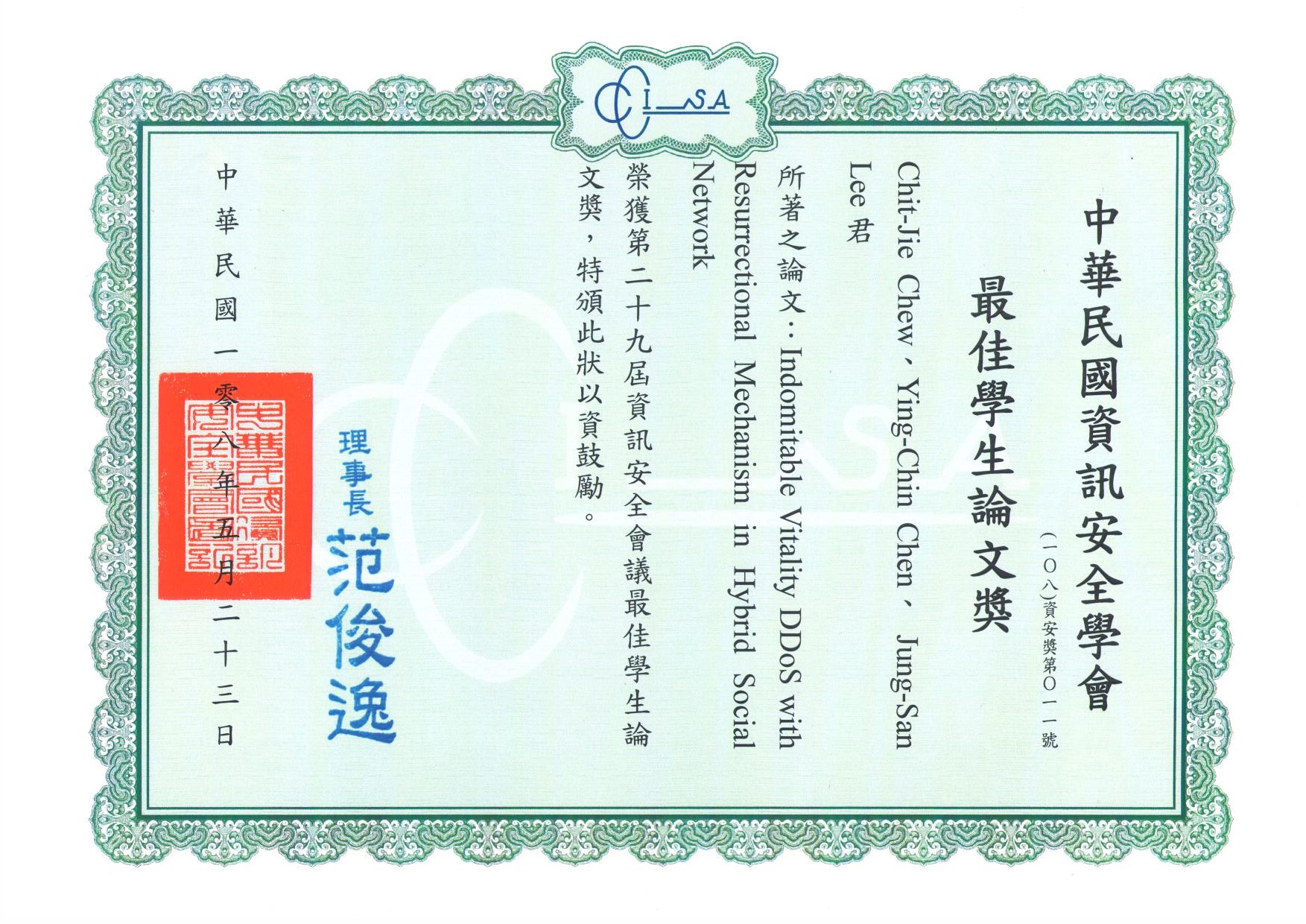 資訊安全會議,每年定期於五月或六月舉行,迄今已舉辦二十八屆。此項學術會議,為我國資訊安全界最重要的學術活動之一。該會議提供資訊安全領域之產、官、學界的科學家、工程師、應用界研發人才以及研究者,共同分享電腦密碼學與資訊安全相關方面最新的經驗、心得、技術以及成果,並藉由會議提供各專家學者相互討論的機會。會議的目的是為了促進學術界、政府單位、和產業界,在資訊安全研究成果之交流。