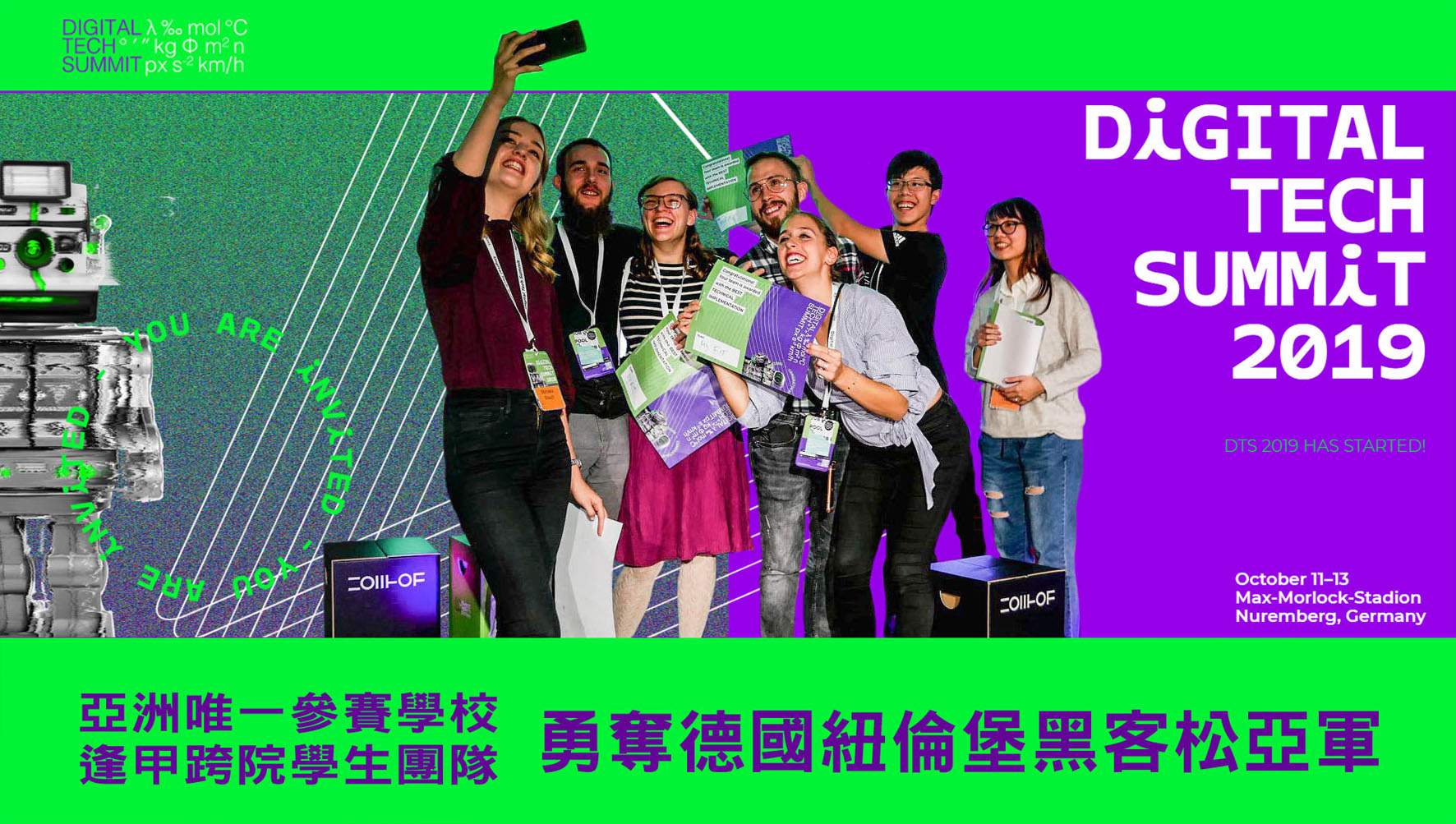 德國紐倫堡技術孵化中心10月11日至13日在當地主辦為期三天之「Digital Tech Summit 2019」,活動分為數位科技論壇與黑客松賽事,吸引了全球超過800位業界人士與學生參與,逢甲大學是唯一參加黑客松賽事的亞洲學校,且表現亮眼,取得亞軍殊榮。